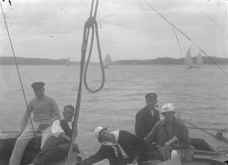 Enl. text i blå bok: "Personer i aktern på segelbåt."