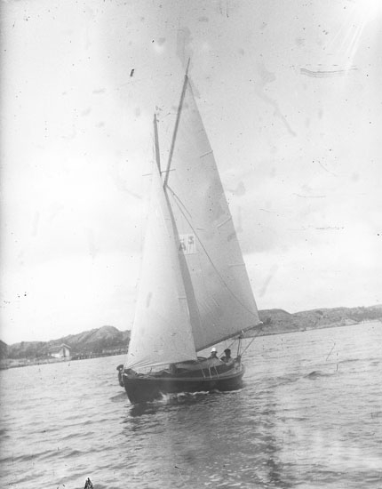 Titel: Enl. text i blå bok: "Gaffelriggad koster under segling."