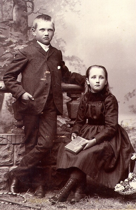 Erik Conrad Johansson med yngre syster Anna Rebecca Johansson vid ett foto taget omkr. år 1895.