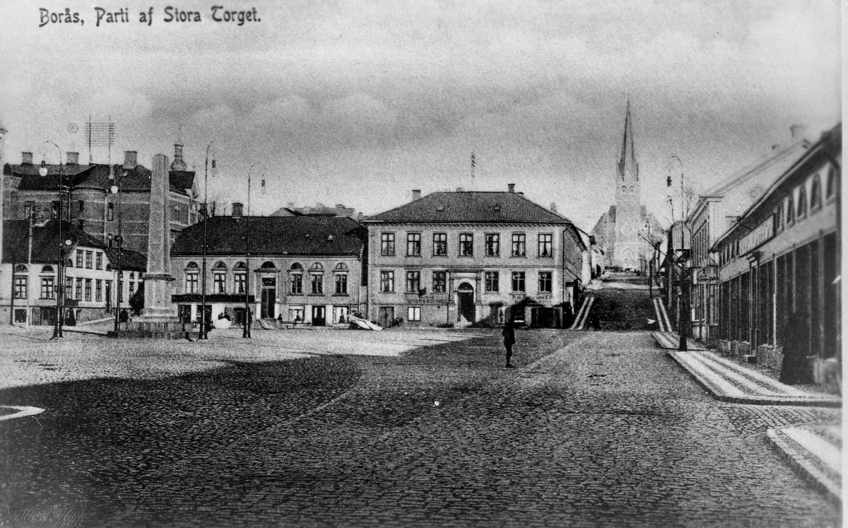 Stora Torget med Obelisken och kvarteret Justitia i fonden omkring år 1908.