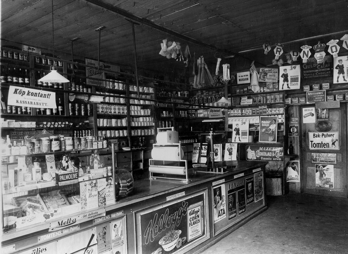 Interiör från Tidblads butik (Stora Brogatan 11) i kvarteret Mars år 1933.