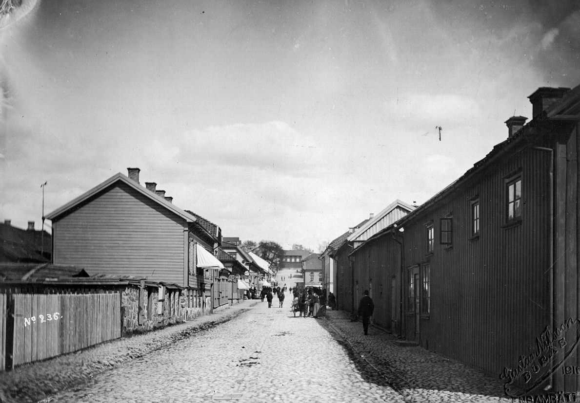 Torggatan mot öster med stadshäktet i fonden under 1880-talets början.