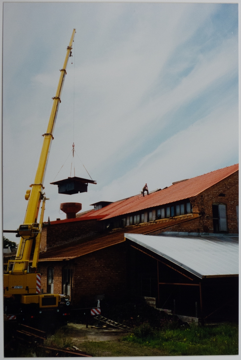 Gjuteriet, ventilationshuv sätts på taket med hjälp av kran