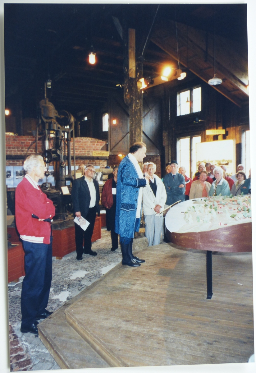 Titel: Pensionärer från Volvo på besök i Forsvik i juni 2002. I Träsliperiet.