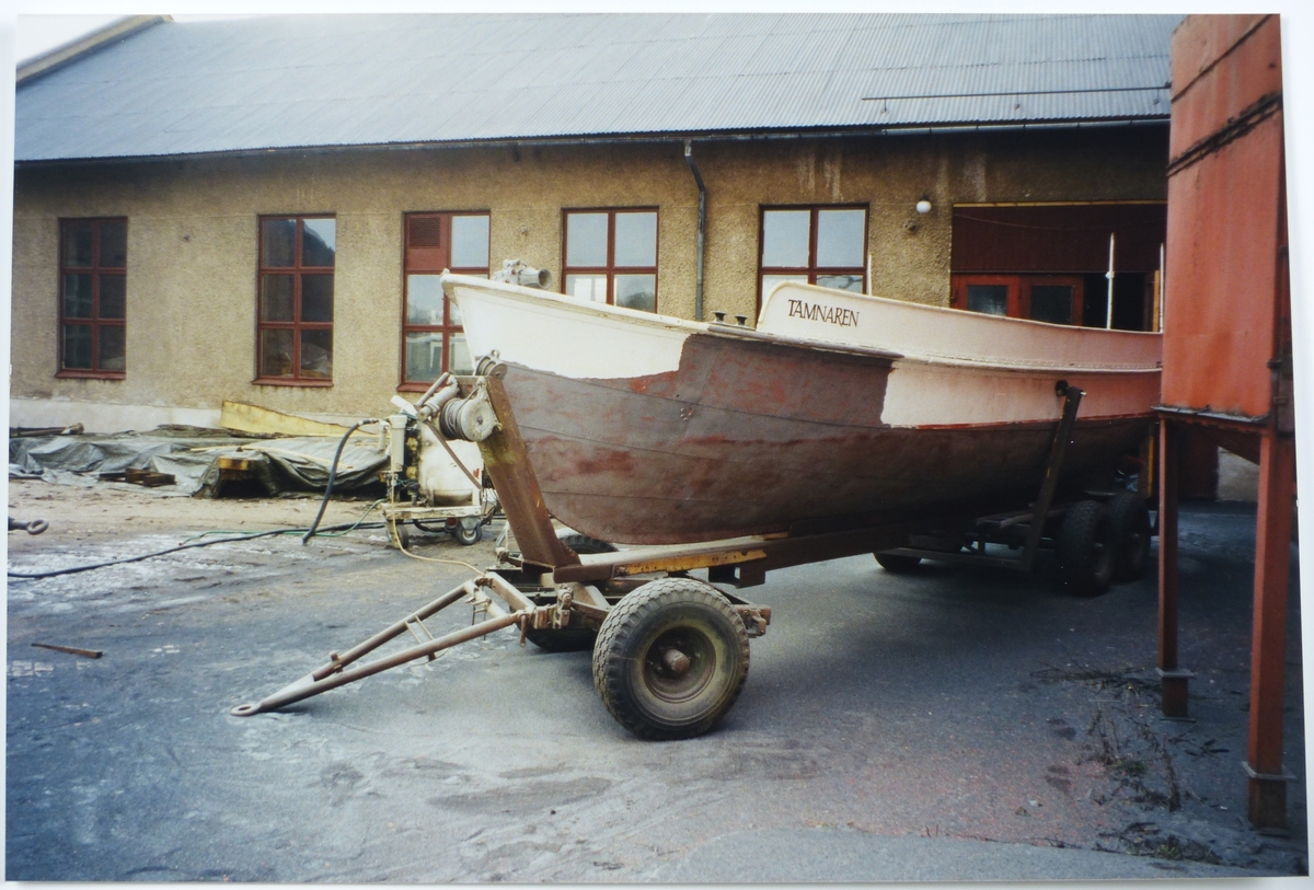 Titel: Båten Tämnaren utanför Mekaniska verkstaden och Renseriet.