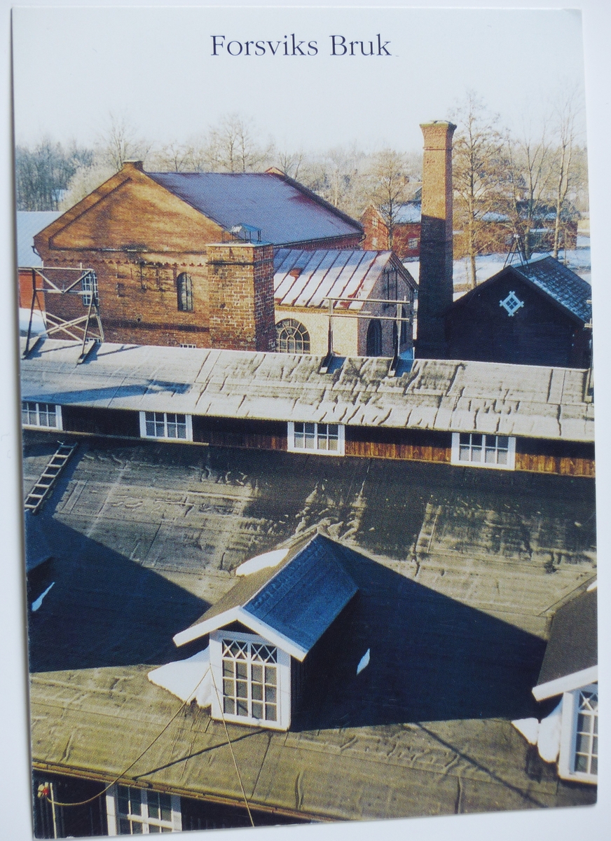 Vykort: Forsviks Bruk med medeltida anor tillhör de äldsta industriorterna i landet. Kvarn, smedja, gjuteri med modellsnickeri, mekanisk verkstad, plåtverkstad, kraftverk, brukskontor, bostäder mm återspeglar mångfalden av verksamheter i Forsvik.