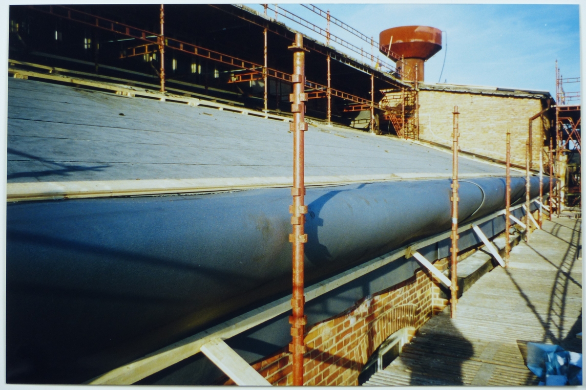Gjuteriet, nedre södra takfallet, takfoten inklädd för värme