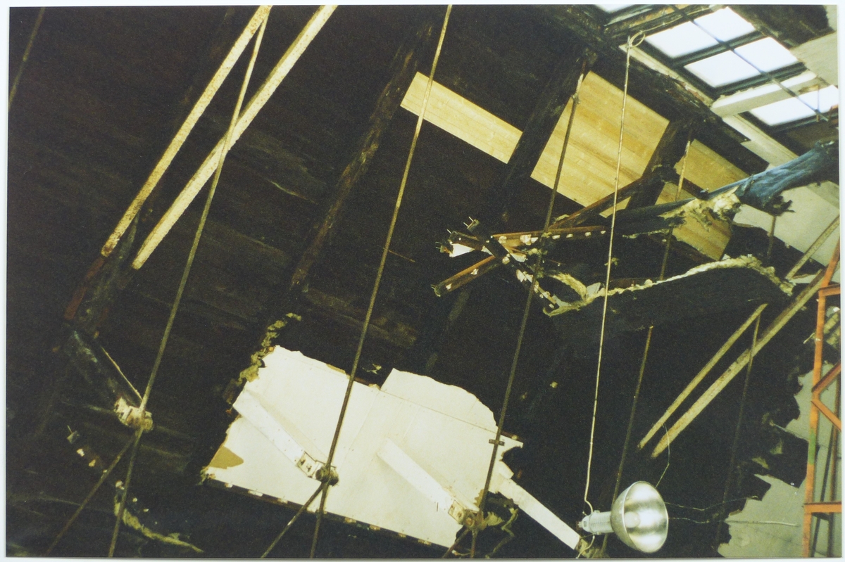 Gjuteriet, interiör. Gipstaket med isolering rivs ned
