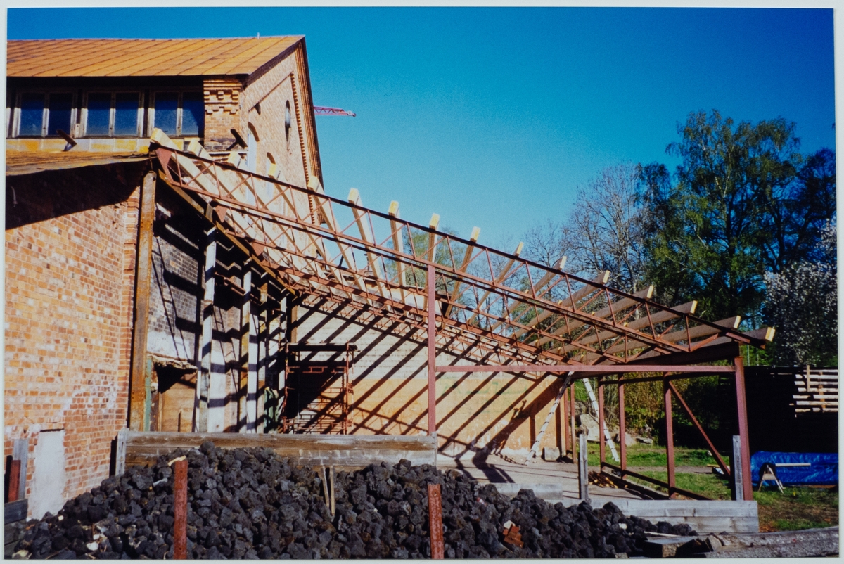 Gjuteriets takrestaurering, takåsarna på plats vid östra gaveln