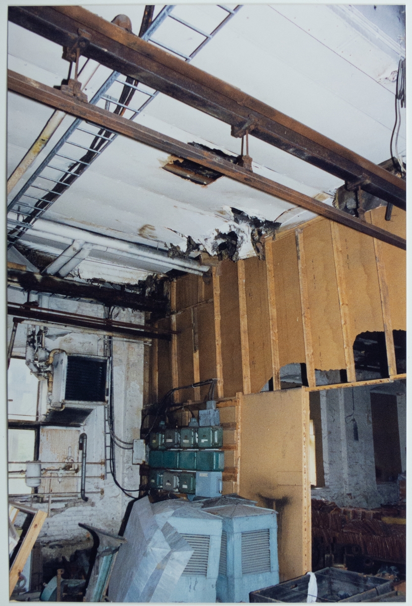 Gjuteriet, provisoriska mellanväggar, mot nordväst, igensatta fönsteröppningar