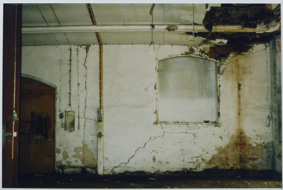 Gjuteriet, igensatt fönsteröppning och spricka i ytterväggen