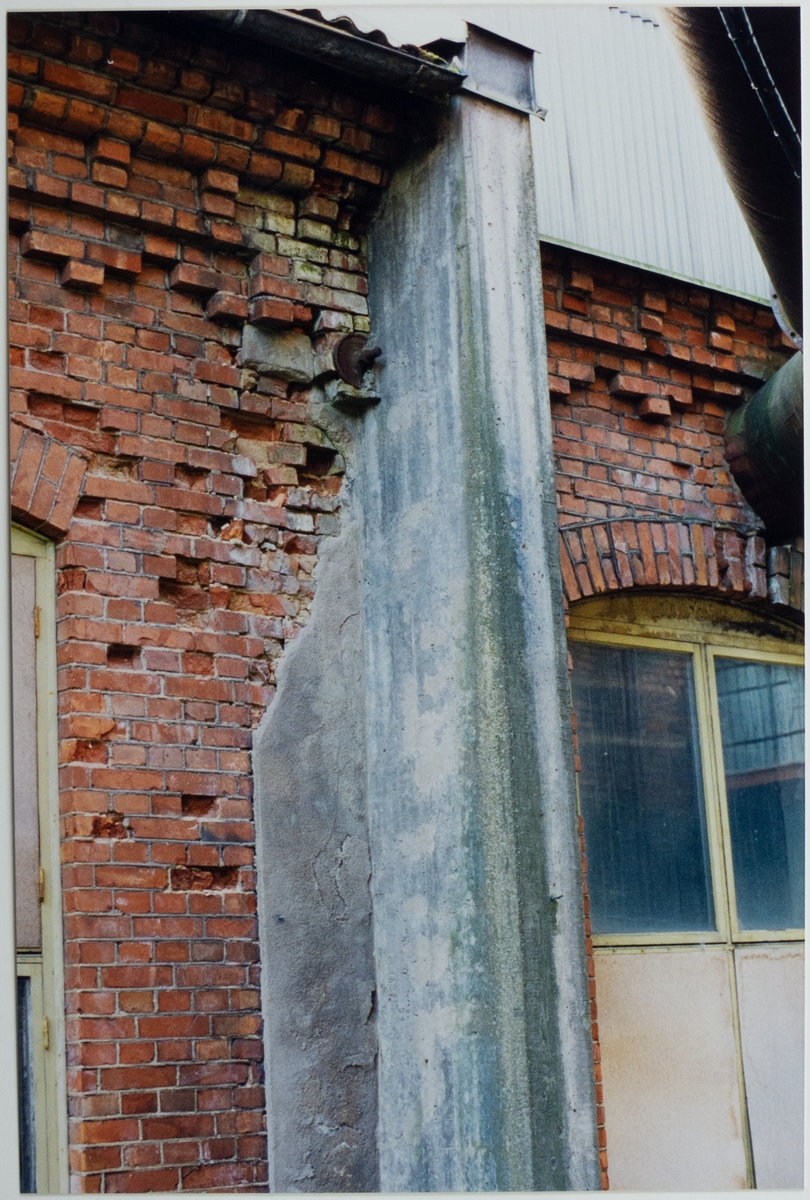 Gjuteriet, detaljbild på skador på nordvästra fasaden