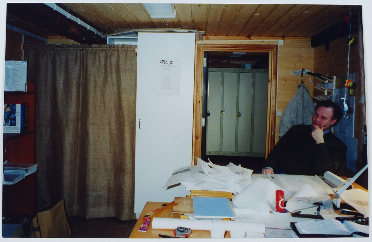 Mikael Hedin i sitt arbetsrum, Träsliperiet