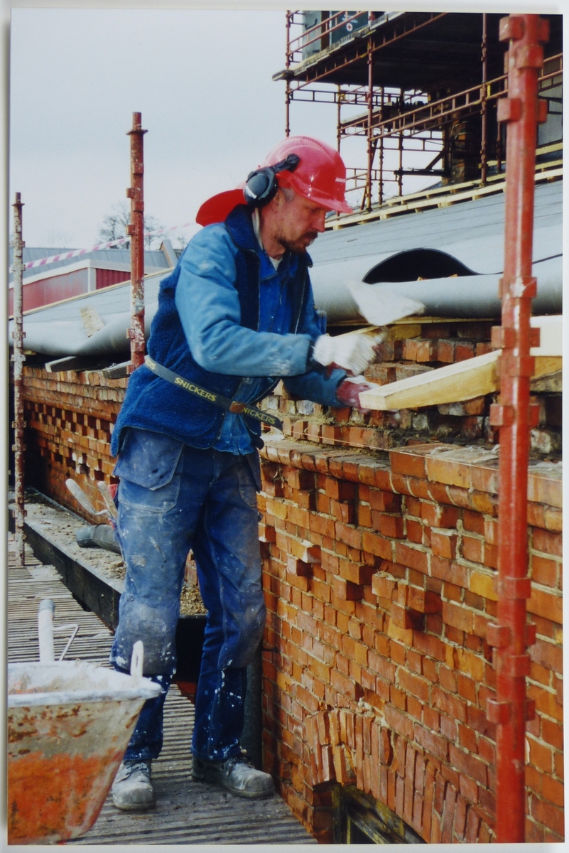 Gjuteriet, muraren Kjell Larsson reparerar takfoten