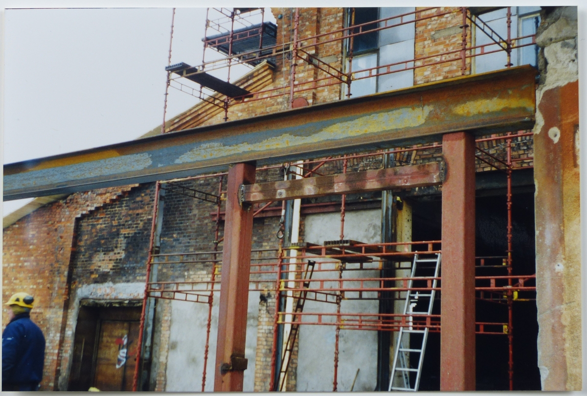 Gjuteriet, östra gaveln, ny I-balk monterad på befintlig pelare