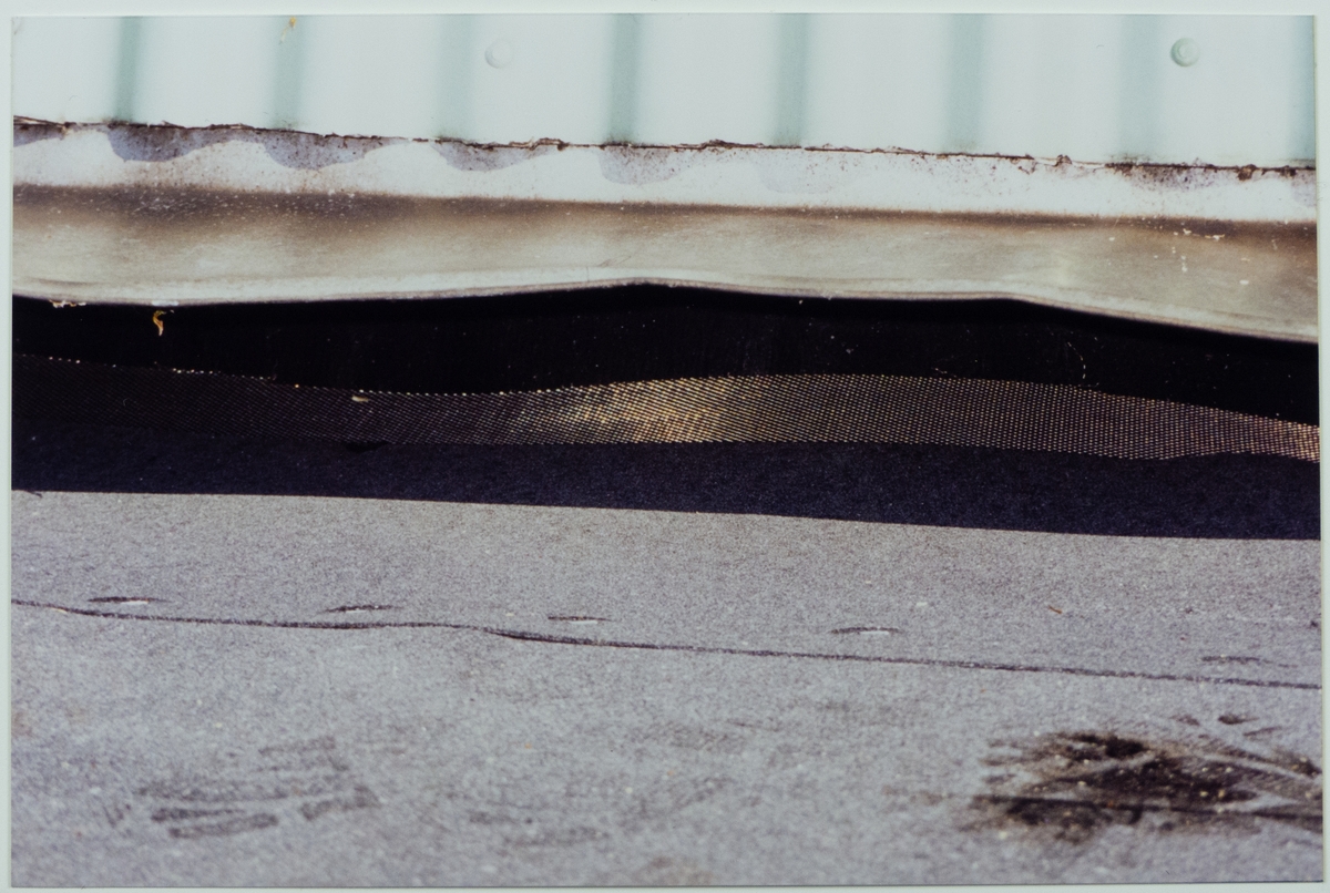 Gjuteriets takrestaurering, myggnät i rostfritt vid sandsilons södra vägganslutning till "pulpettaket" med papp YAM 2000