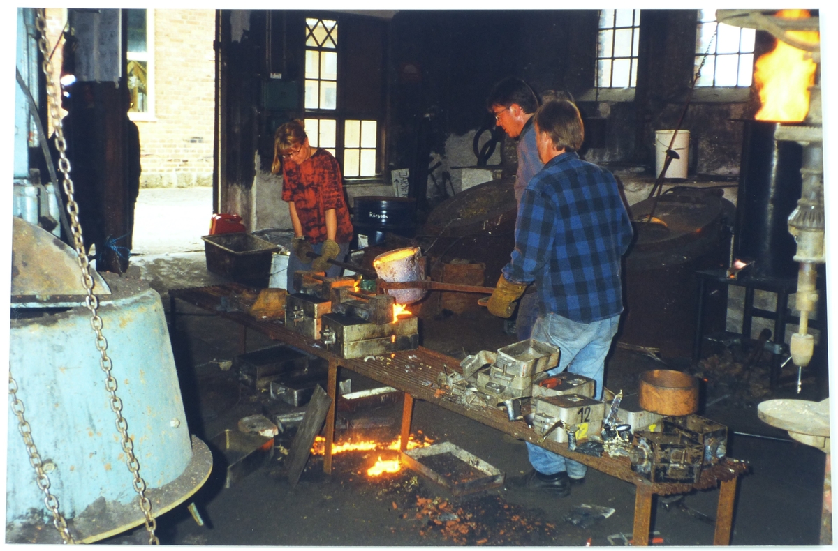 Metallgjuteriet, Kristin Andersson, Anders Nyberg och Ragnar Löchen häller upp smältan