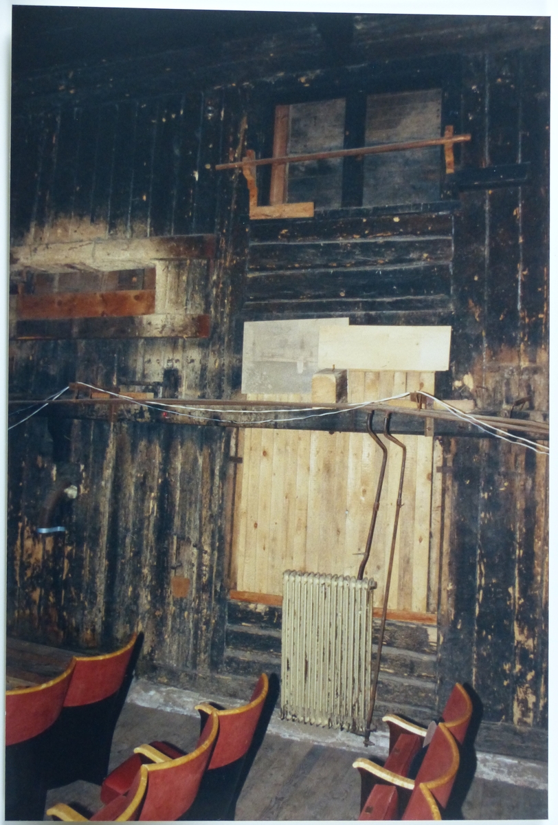 Träsliperiet före renovering. Bildspelslokal, mot vägg till "slipstolar".