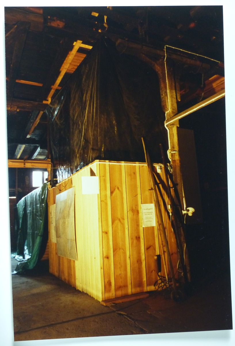 Träsliperiet före renovering. Utställningslokal, mot bildspelslokalen (nuvarande trappa).