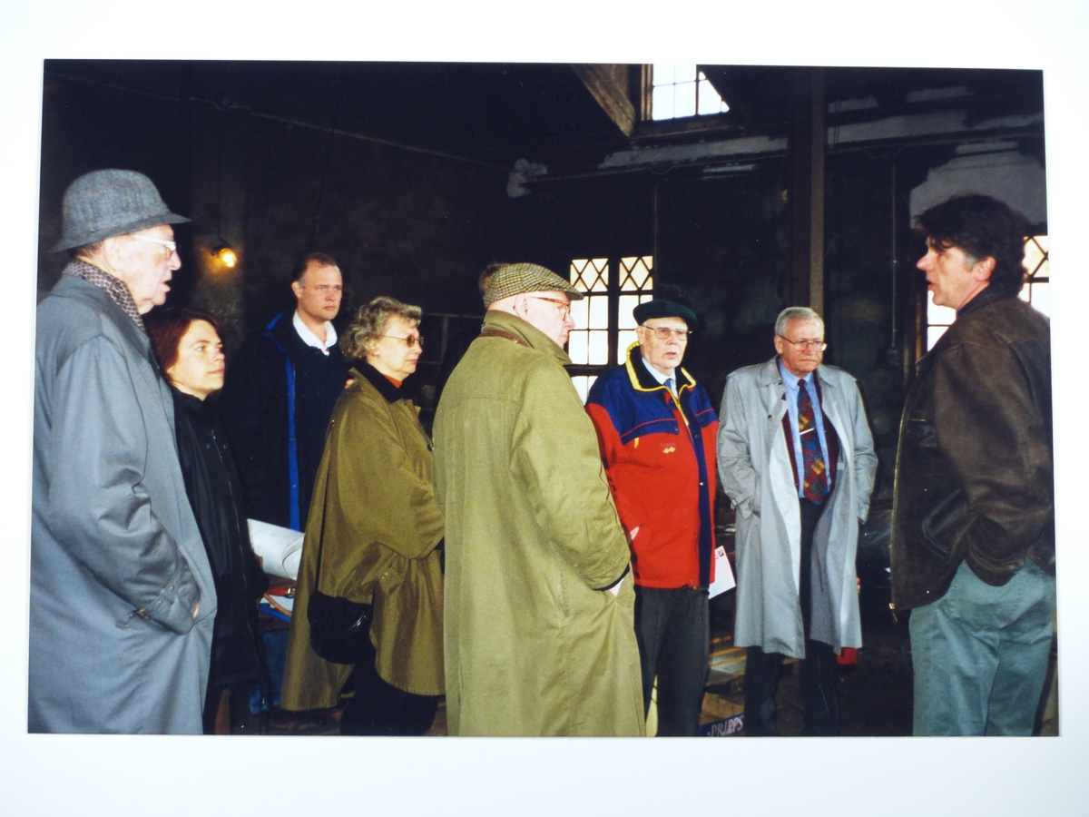 Titel: Metallgjuteriet. Ragnar Löchen demonstrerar sin nya kupolugn för Rolf Sahlberg, Göte Fernheden, Helen Westin, Eva Björkman, Jörgen Friberg, Folke Larsson och Mikael Hedin.