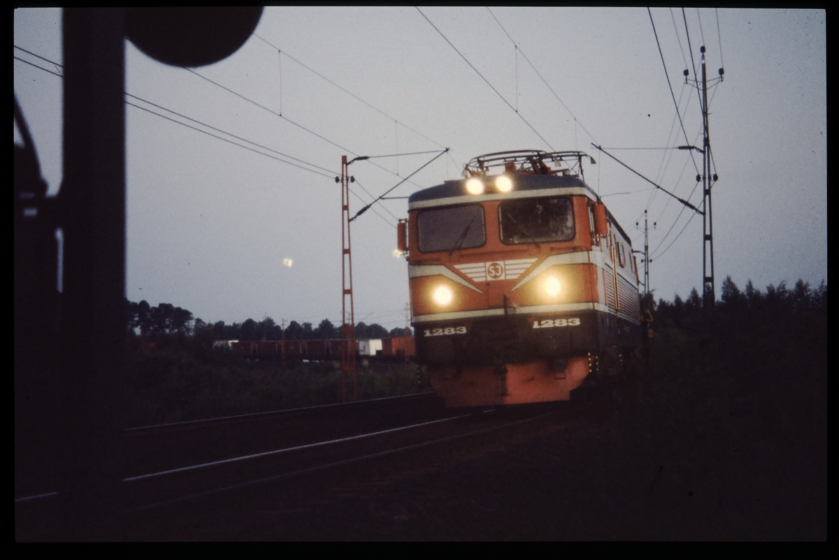 Statens Järnvägar SJ Rc4 1283, med godsvagnar.