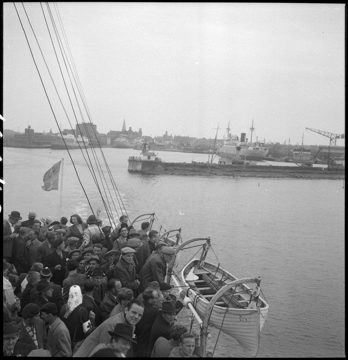 Danska flyktingar ombord tågfärjan Malmö på väg hem till Danmark.