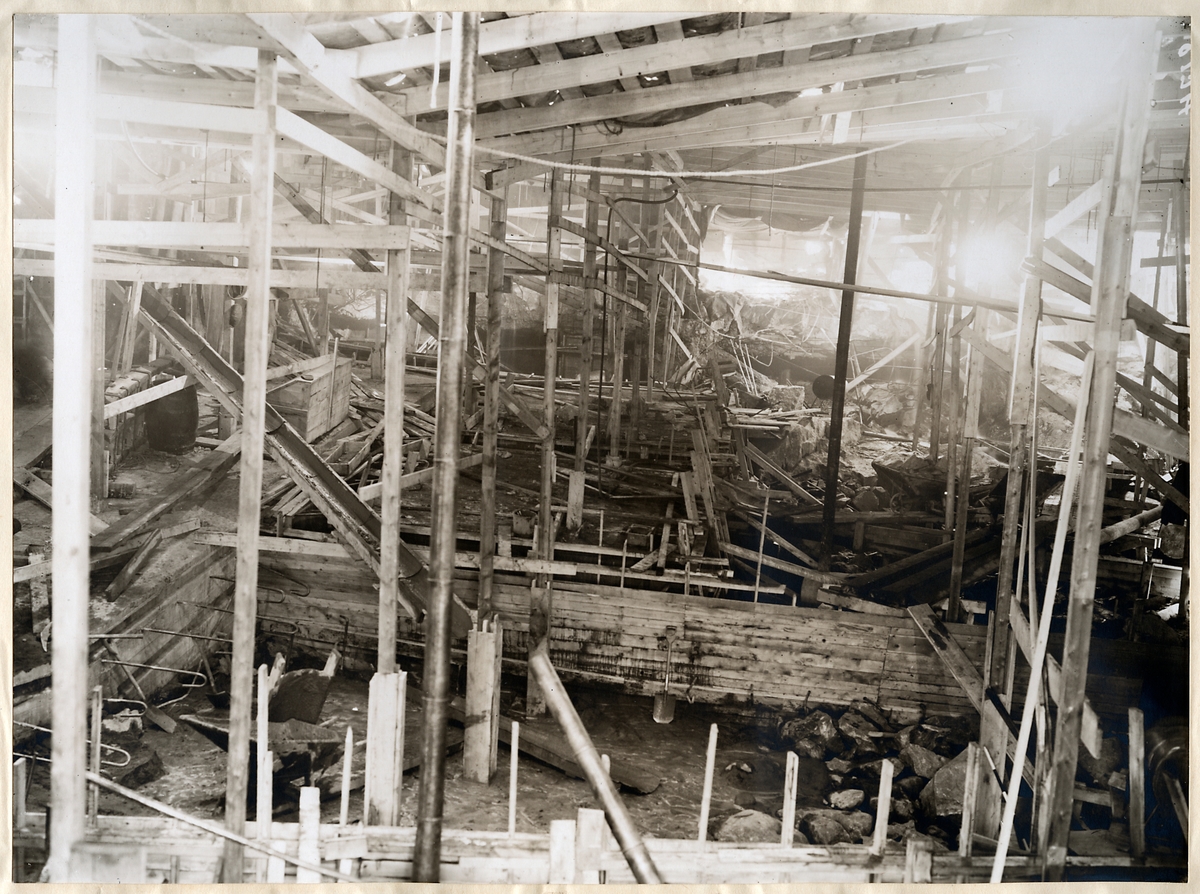 Förstärkningarbete av järnvägsbron över Piteälven vid Sikfors på linjen mellan Piteå och Älvsbyn.
