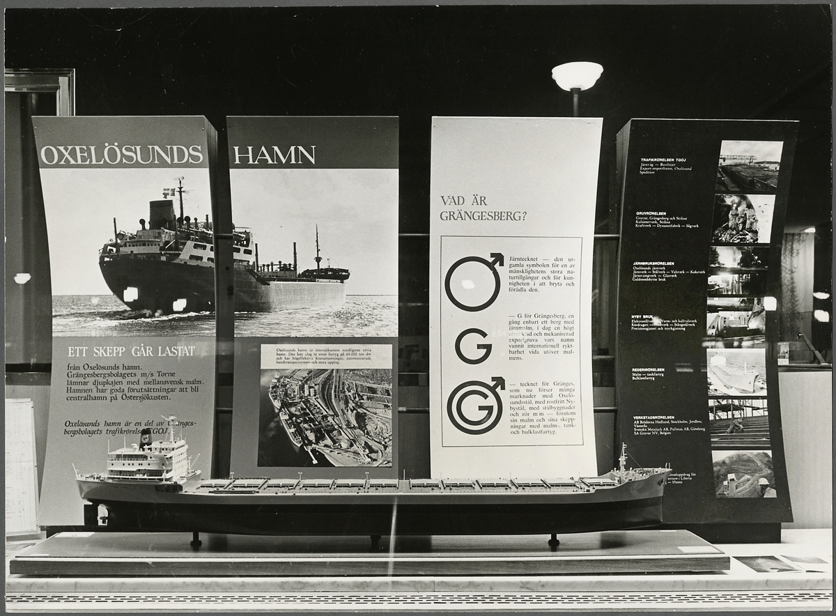 Trafikaktiebolaget Grängesberg–Oxelösunds järnvägars utställning i form av ett fönsterarrangemang i skyltfönstret till Skandinaviska banken i Eskilstuna i november 1967.