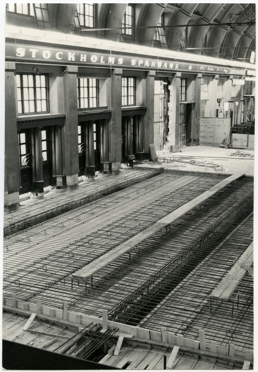 Statens Järnvägar, SJ, Stockholm centralstationen ombyggnad av bjälklagsarmeringen i hallplanet.