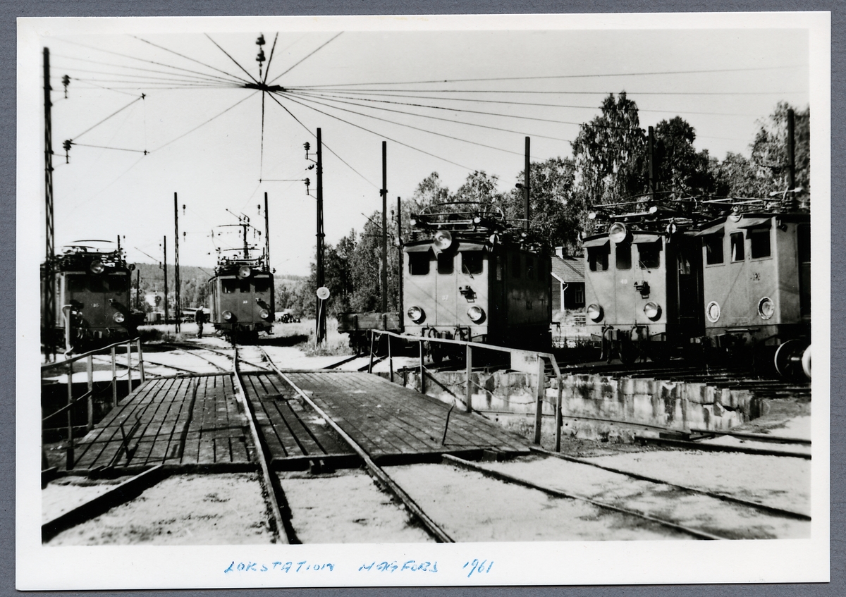 Nordmark-Klarälvens Järnvägar, NKlJ ellok 36, 33, 37 och 40 utanför lokstallet i Hagfors.