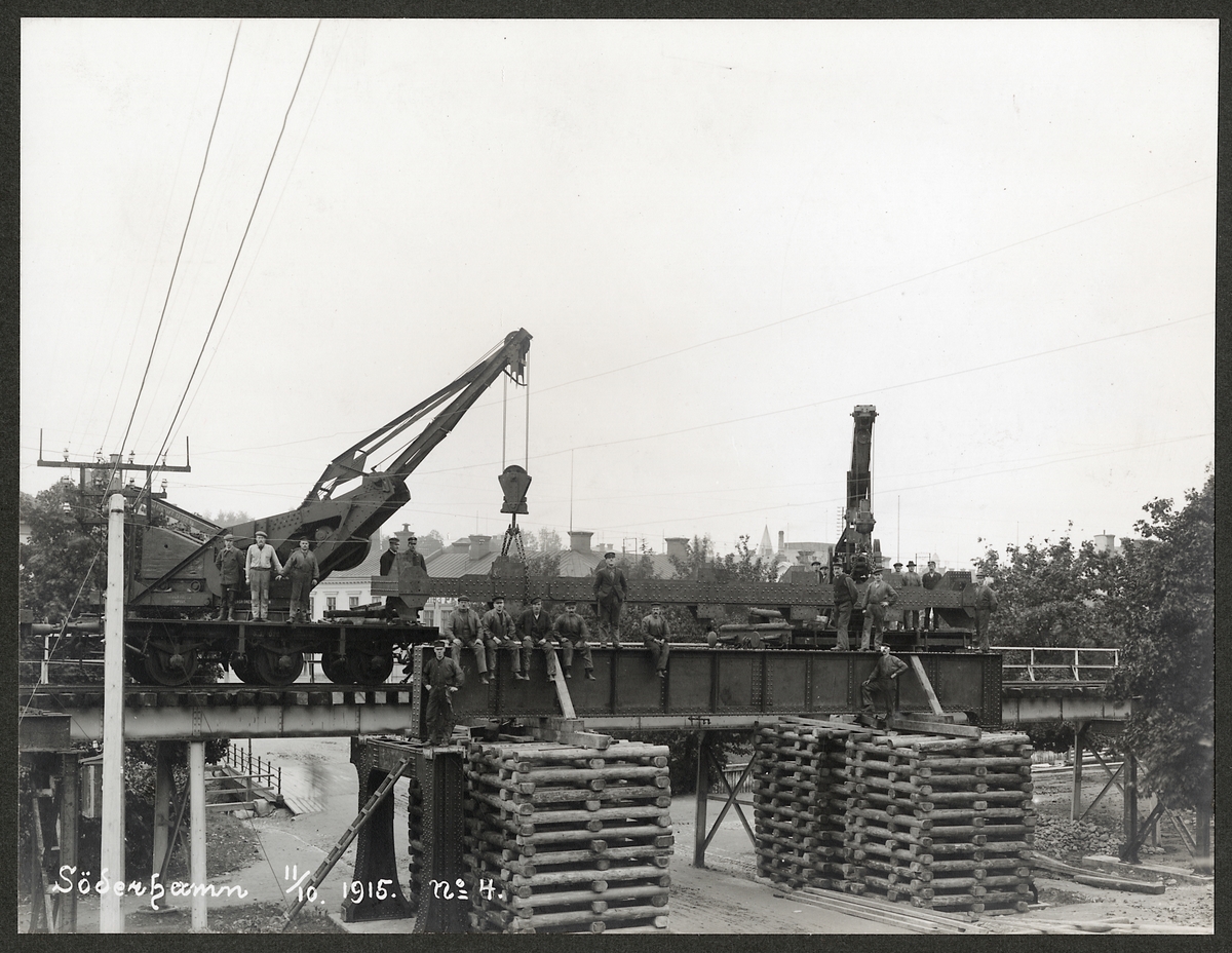 Uppförande av viadukt i Söderhamn 1915. Statens Järnvägar, SJ kranvagn 072.