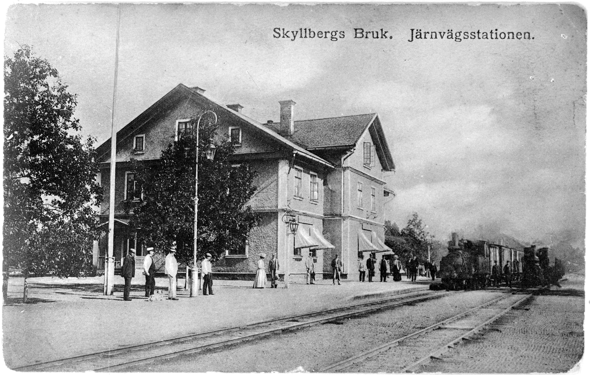 Skyllbergs bruk station. Det vänstra tåget dras av lok nummer 5 och det andra av lok nummer 1 "KÅRBERG"