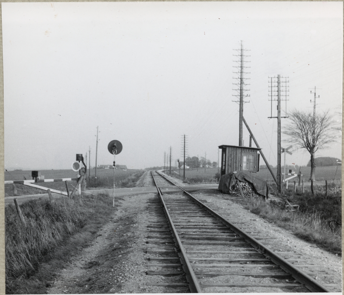Järnvägsövergång med vaktkur vid Hundsäng på linjen mellan Skarhult och Hurva.