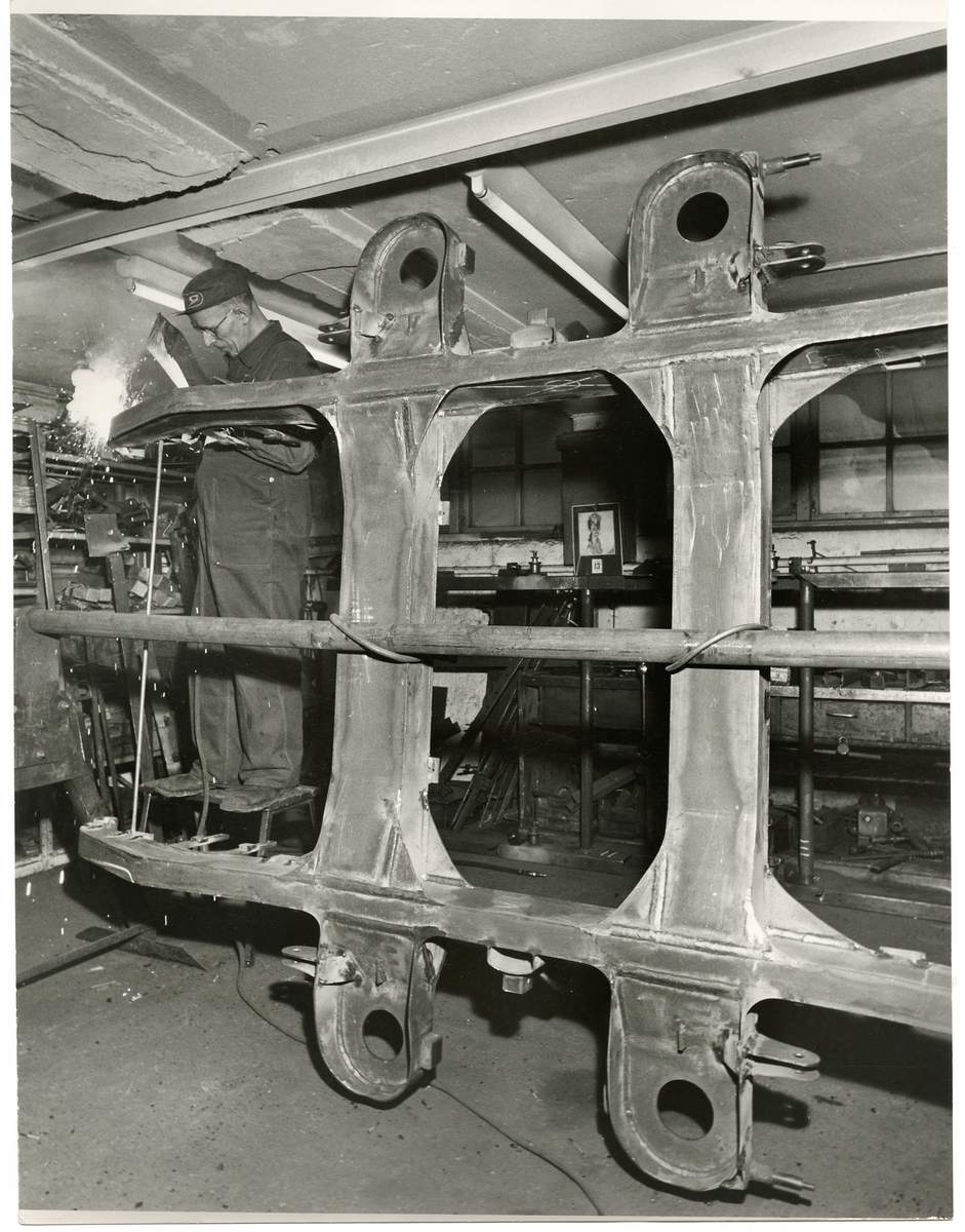 Rälsbusstillverkning hos Hilding Carlsson Mekaniska Verkstad i Umeå.