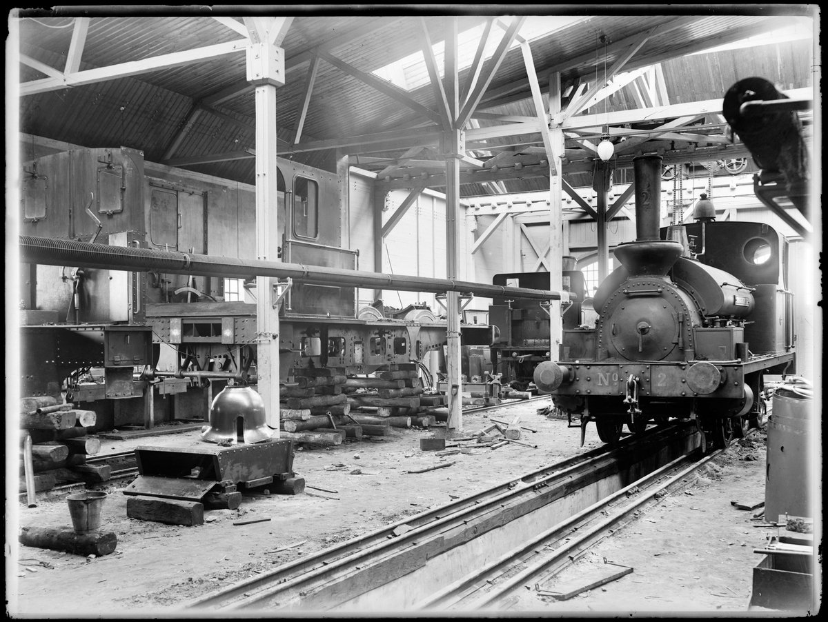 Interiör vagnverkstaden vid Kalmar Verkstad AB. Kalmar Järnvägar, KJ lok 2.