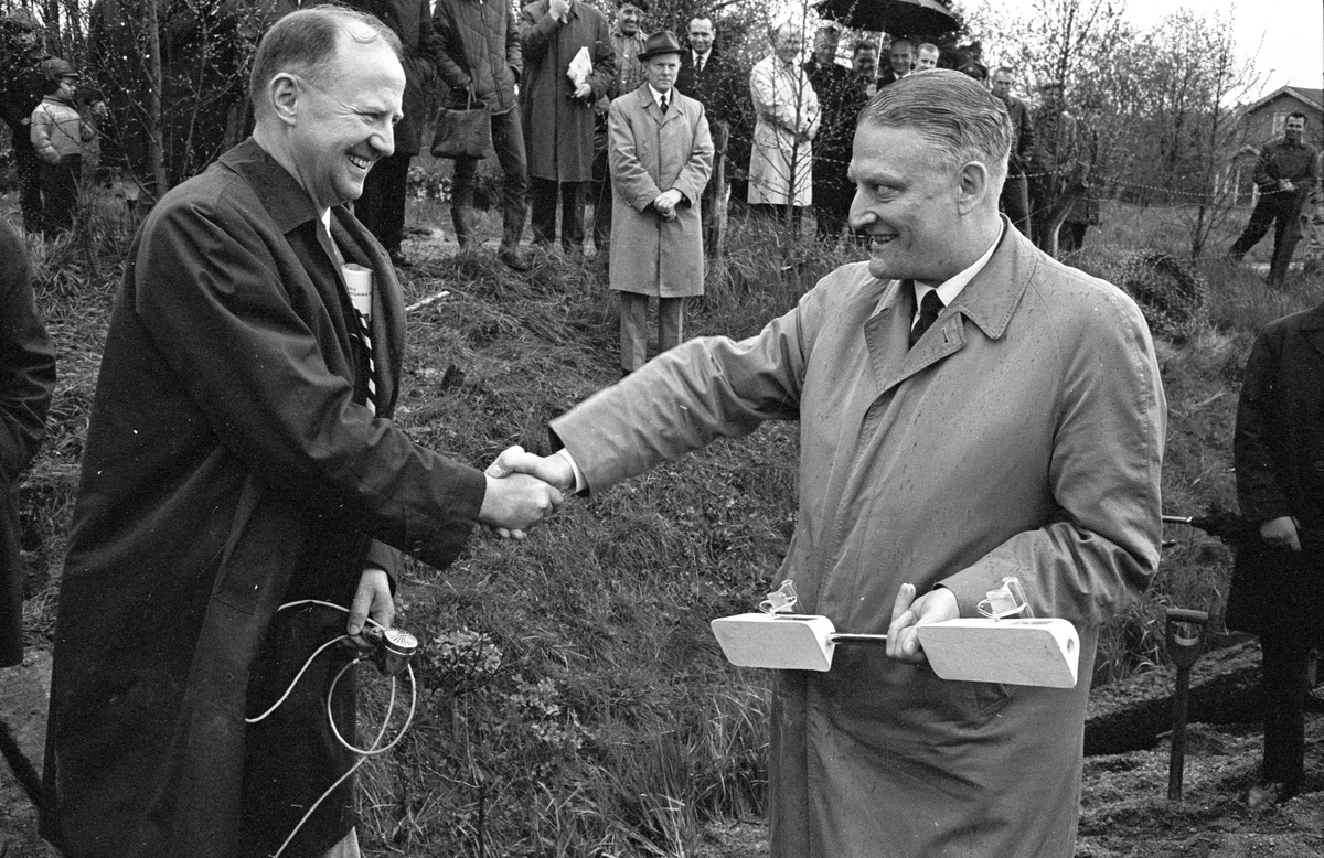 Generaldirektör Upmark till höger, tar emot en modell av den miljonte betongslipersen