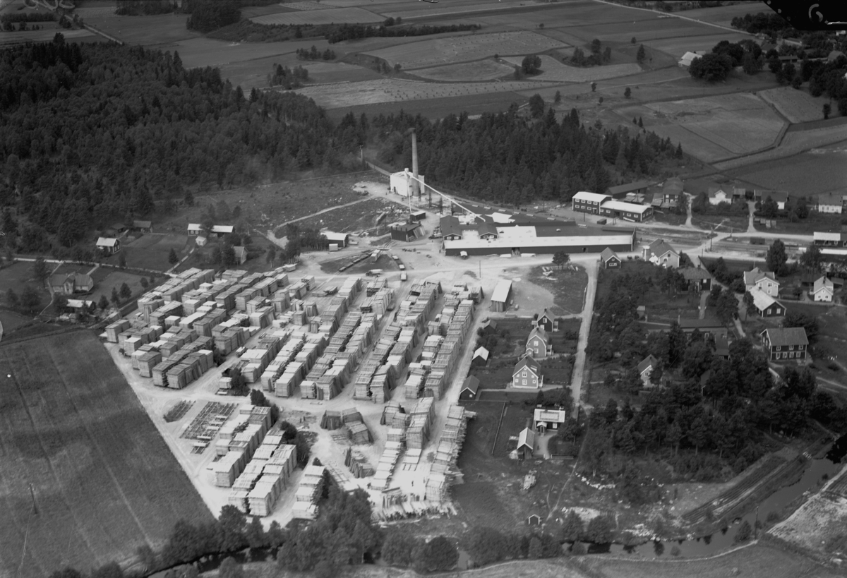 Flygfoto över ett sågverk i Landsbro, Vetlanda kommun, Jönköpings län. C2861