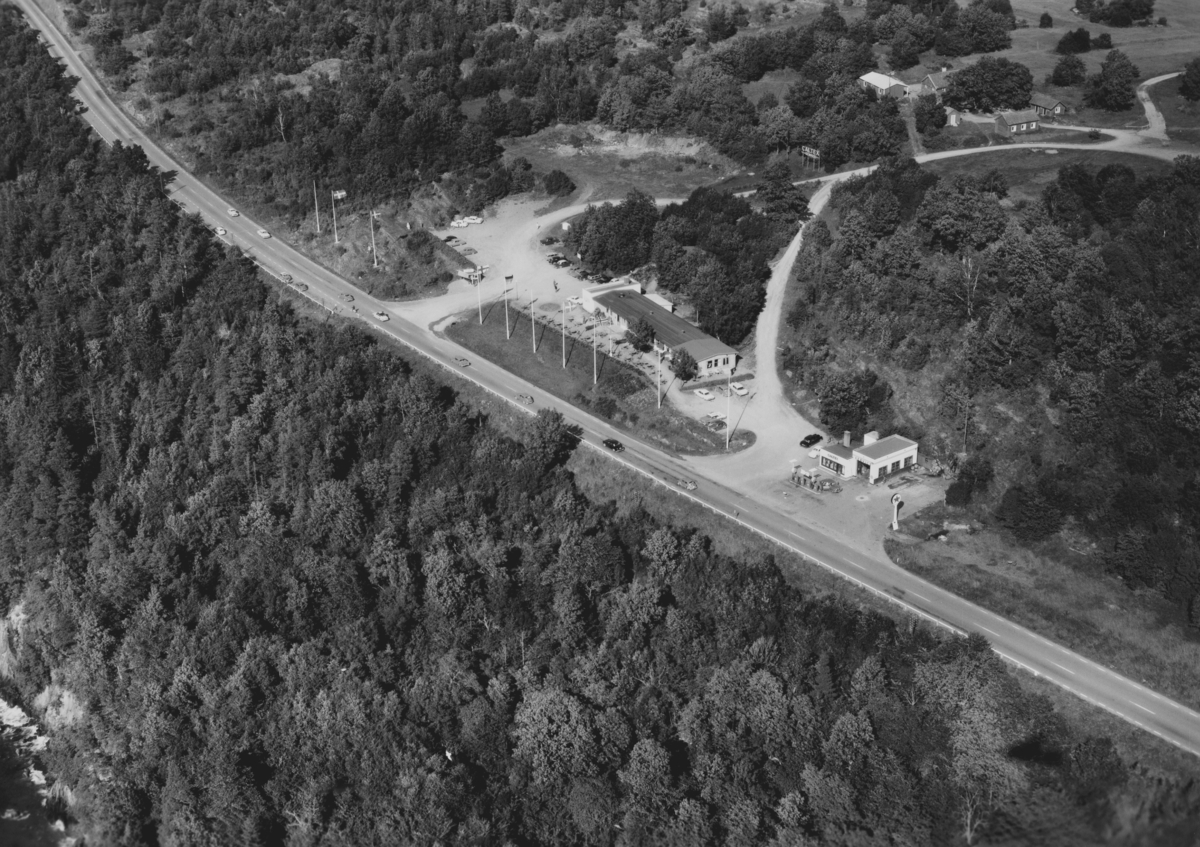 Flygfoto över restaurang byggnad med Caltex mack i Småland. Nr: 1262