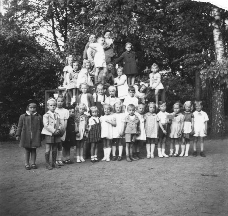 En gruppbild på barnen vid Västra Barnträdgården i Talavid, Jönköping.