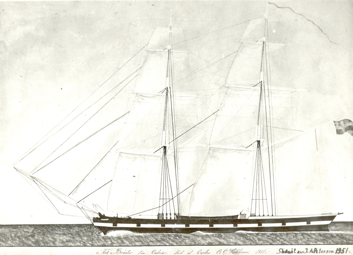 Text till bilden: Två Bröder från Calmar förd af capten O. G. Wahlgren 1851. Fartyget har senare fått ge namn åt en gata i norra Kalmar.