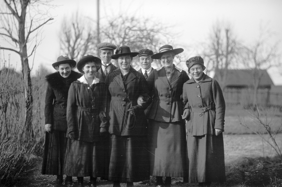 Trea från vänster Einar Larsson, Åsmundshyttan, Fyra från vänster Betty Eriksson, Wästra Hästbo