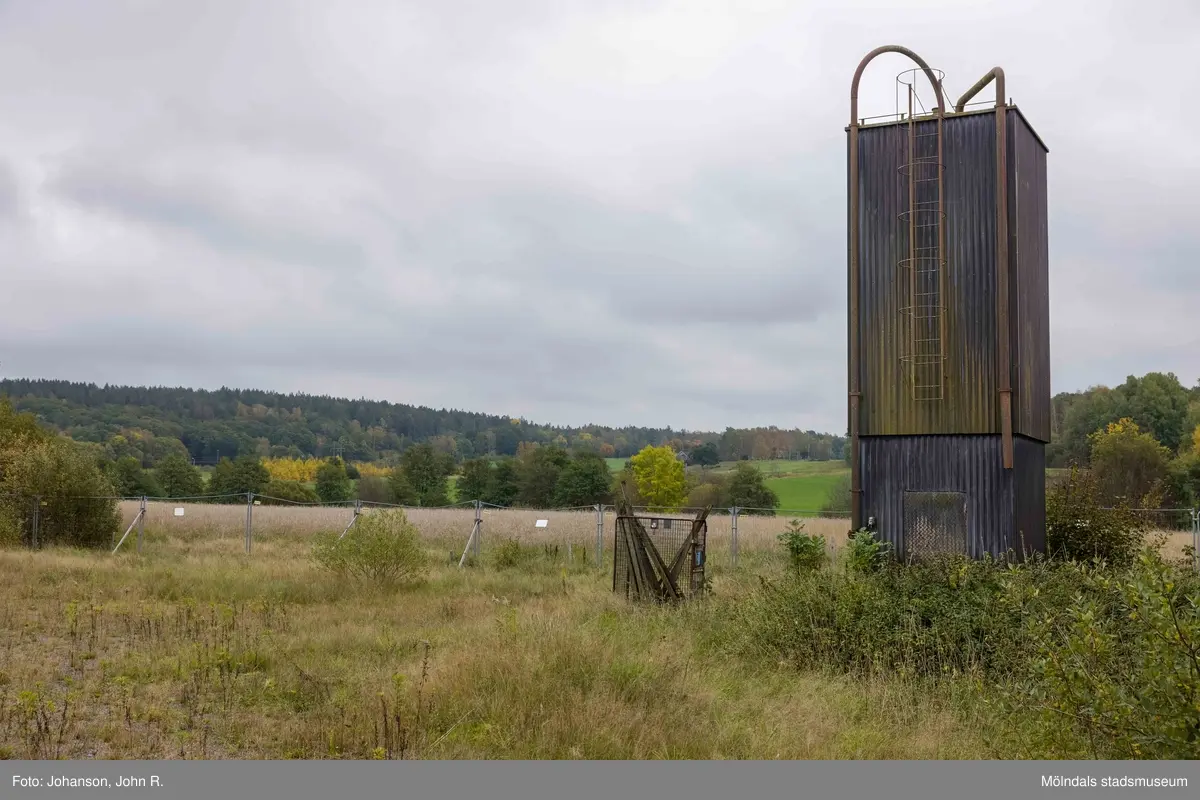 Någon sorts silo i Annestorp, Lindome, i Mölndals kommun. Fotografi taget av John R. Johanson, Rstudio, den 29 oktober 2021.