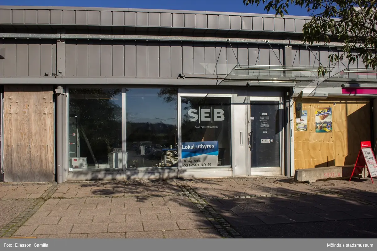 Tom affärslokal i huset Almåsgången 2 i Lindome centrum, den 4 oktober 2016. Lokalen har tidigare inrymt Skandinatiska Enskilda Banken. Fasaden vetter mot söder.
