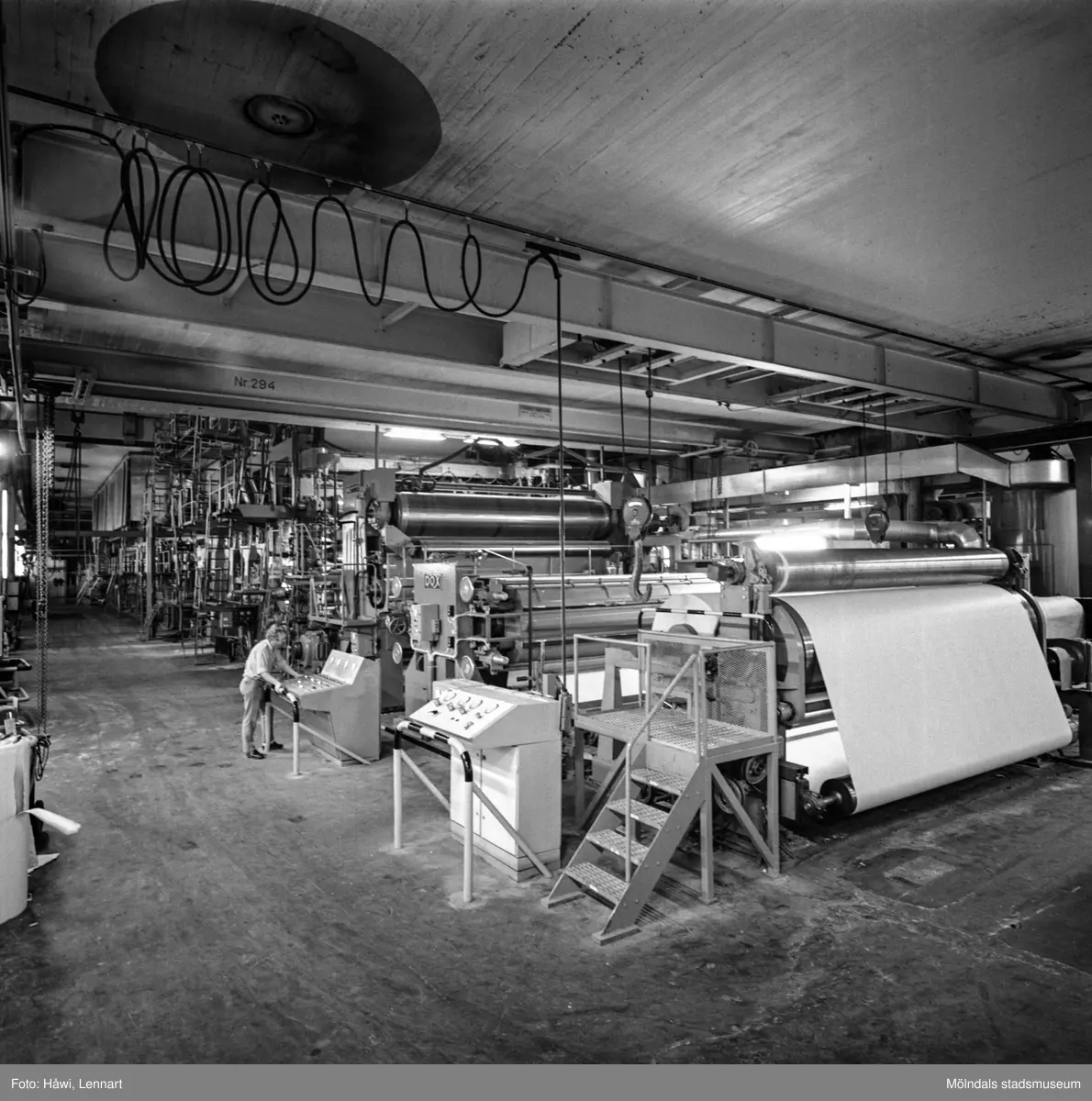 Man i arbete vid maskin på pappersbruket Papyrus i Mölndal, 22/1 1974.