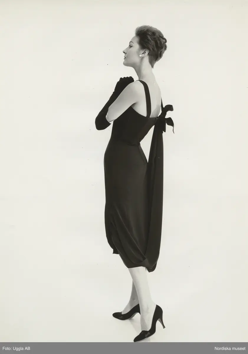 Mannekäng i klänning i svart crepe. Från Lanvin, NK:s Franska damskrädderi.