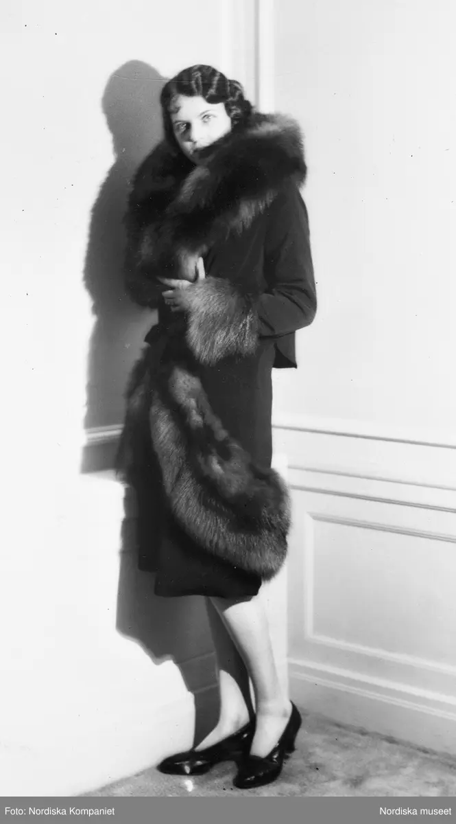 Modell i kappa med rävbesats. Från Jacques Doucet.