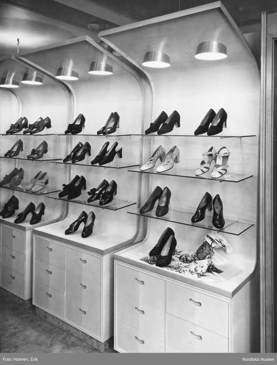 Interiör på Nordiska Kompaniet, skoavdelningen.
