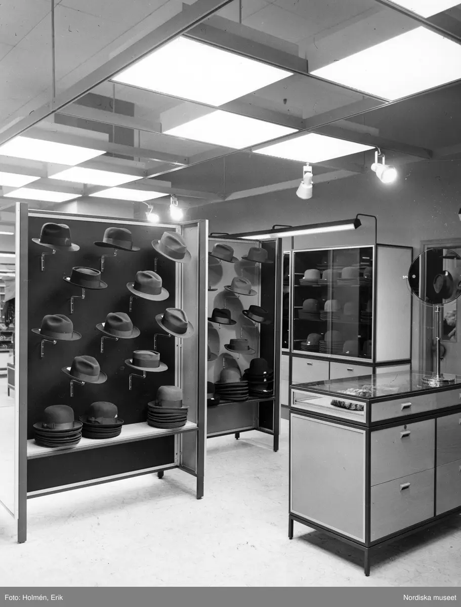 Interiör från Nordiska Kompaniet. Hattar.