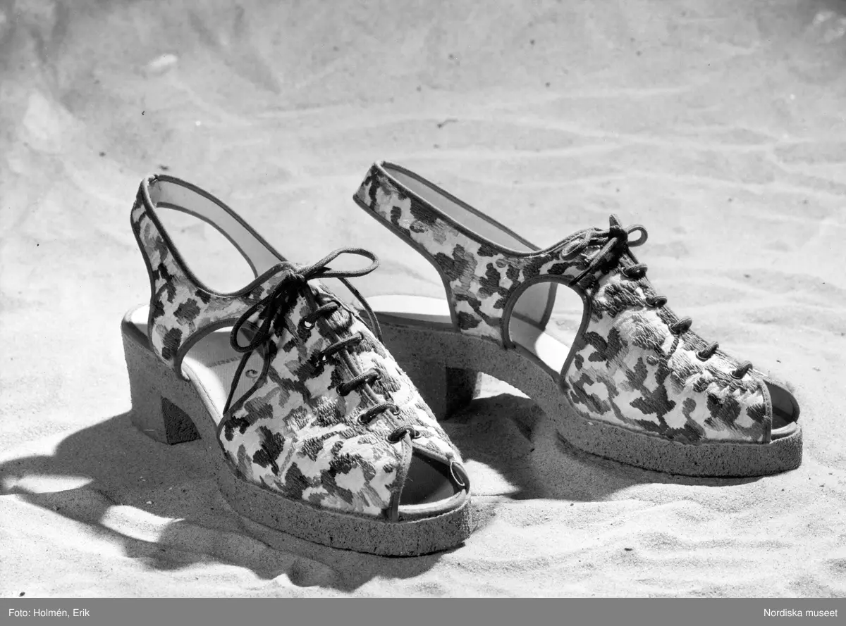 Strandskor med luftgummisulor och mångfärgat, broderat tyg.