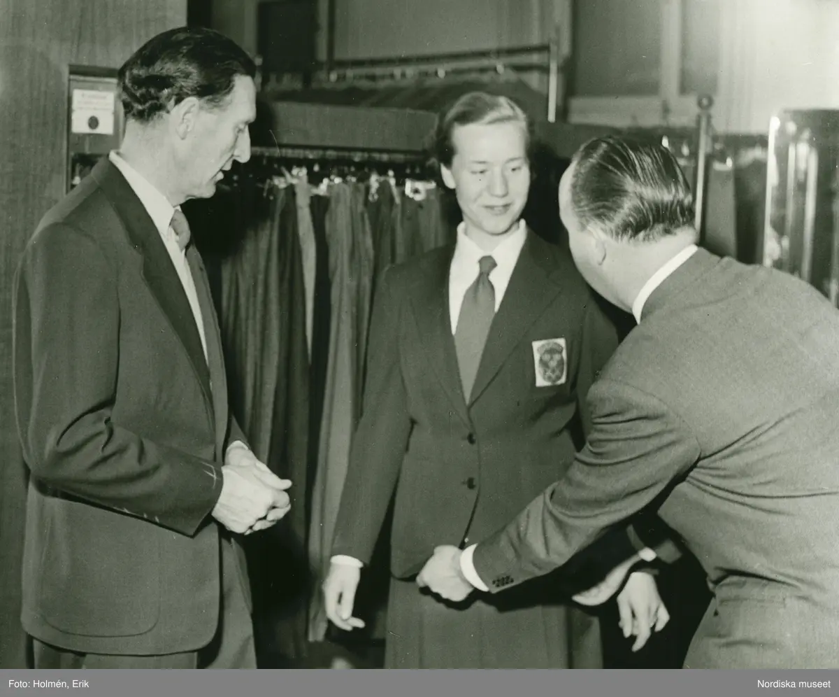 En kvinna provar olympisk dräkt.